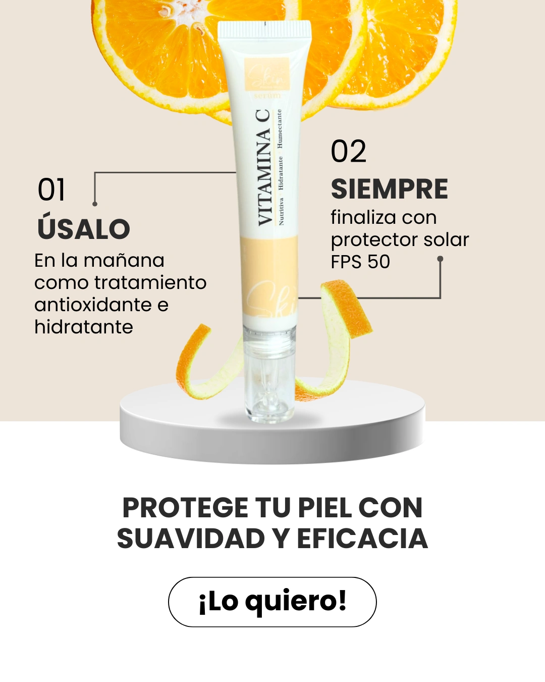 ¿Manchas oscuras y piel opaca sin brillo? Nuestra Vitamina C Transformadora con Sodium Ascorbyl Phosphate combate la hiperpigmentación y revela una luminosidad natural, unificando el tono sin causar irritación.